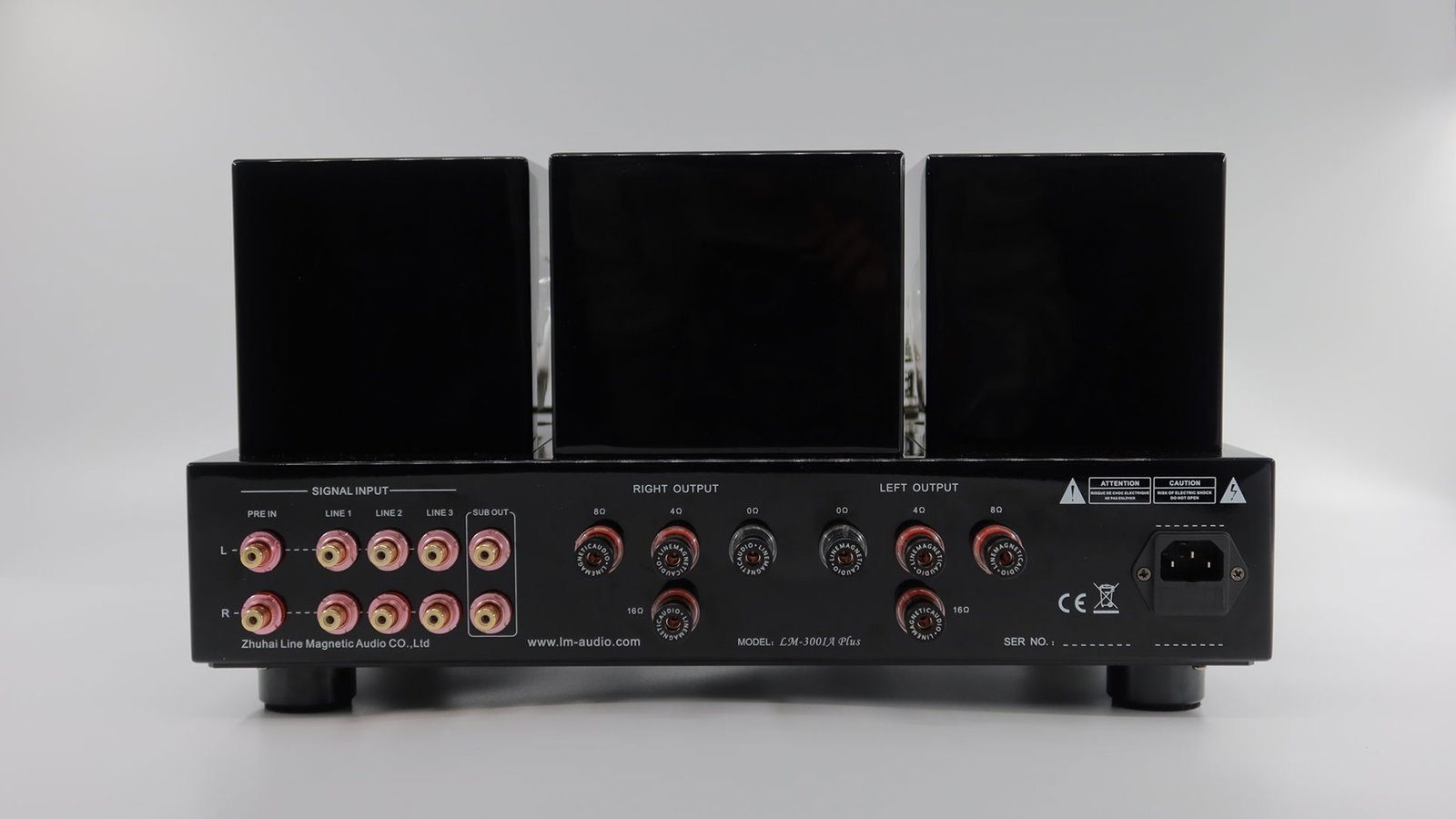 Each LM-300IA is meticulously hand-assembled with point-to-point wiring and soldering. The elegant cabinet features a classic piano lacquer finish. The valuable tubes are safeguarded by a full metal cage, which can be easily removed for adjustments to the quiescent current or for tube replacement.