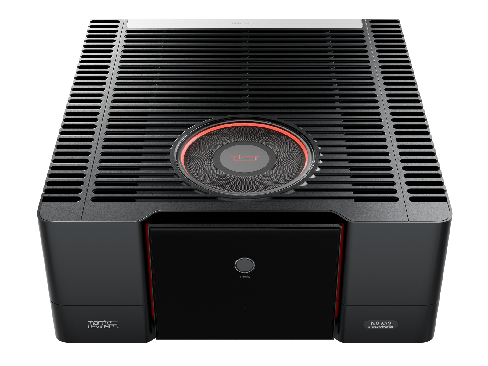 The No. 631 features a vertically oriented design, standing at just under 53 centimeters tall. Consistent with the rest of the series, this chassis is constructed from aluminum and finished in anodized black, complemented by a silver base. The front showcases a glass center panel illuminated by red lighting on either side, while the top panel includes a glass Core element with red accent lighting. The Mark Levinson No. 626, No. 632, and No. 631 amplifiers are set to be available for purchase in the fourth quarter of 2025.