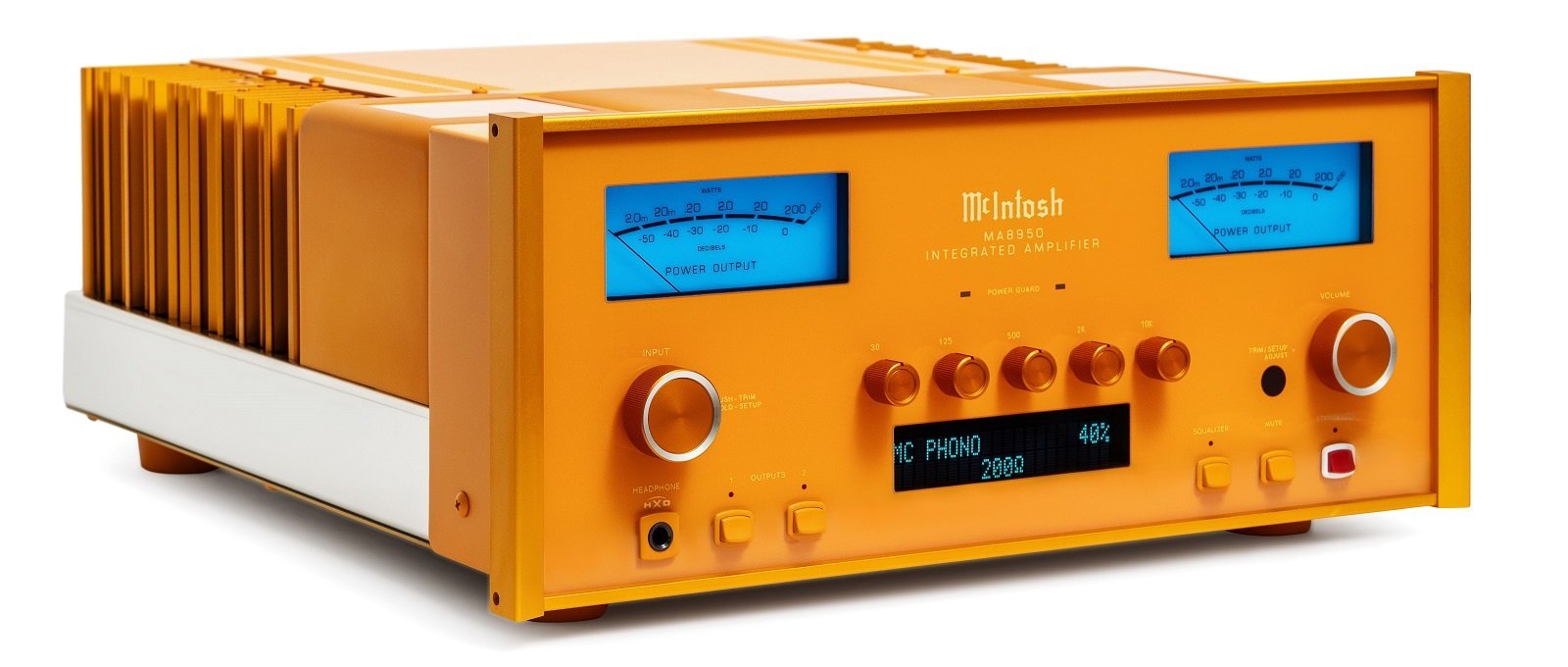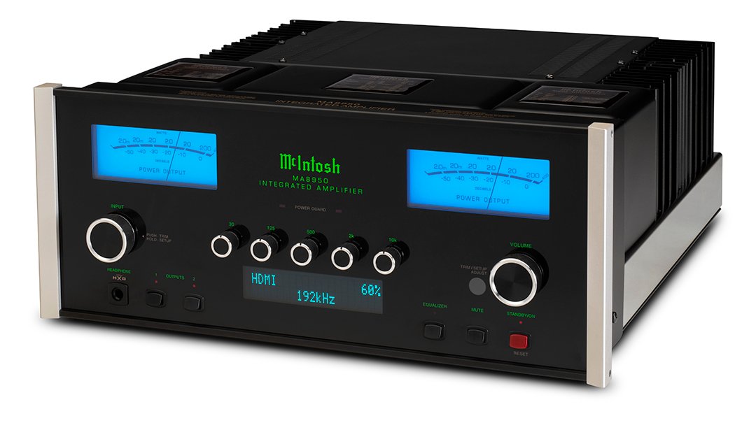 The standard MA8950 is now a few years old and offers 200 watts per channel, nine analog inputs: one balanced, six unbalanced, plus an MC (with adjustable load) and an MM phono input. In addition to a five-band tone control, the amplifier also features McIntosh's DA2 digital audio module, which includes a quad-balanced, eight-channel, 32-bit DAC.