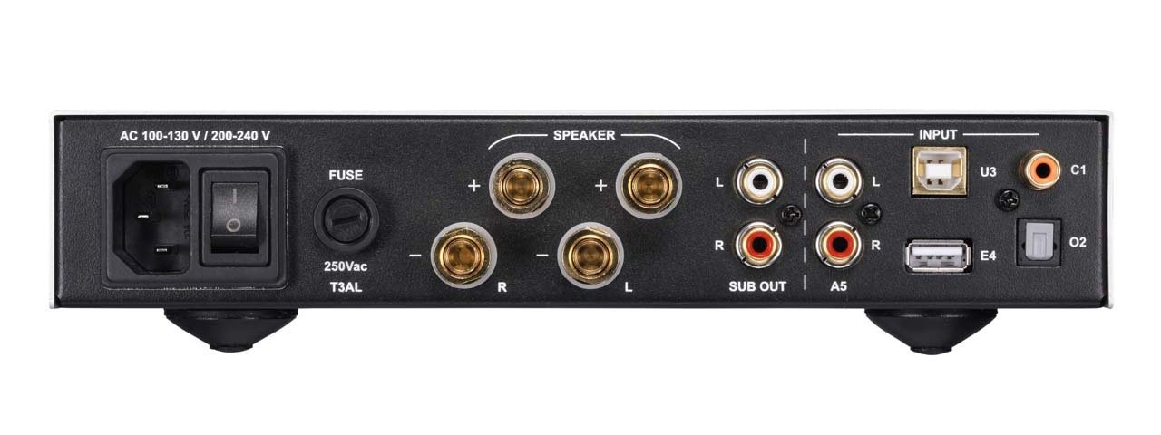 Inside, it features an AKM DA chip capable of processing PCM signals up to 32-bit/384 kHz and DSD256. Digital connectivity includes optical and coaxial S/PDIF inputs, as well as a USB Type-B connector. Functions are complemented by a line-level input, a line-level output (for example, for a subwoofer), and an expansion port for Bluetooth or streaming modules.