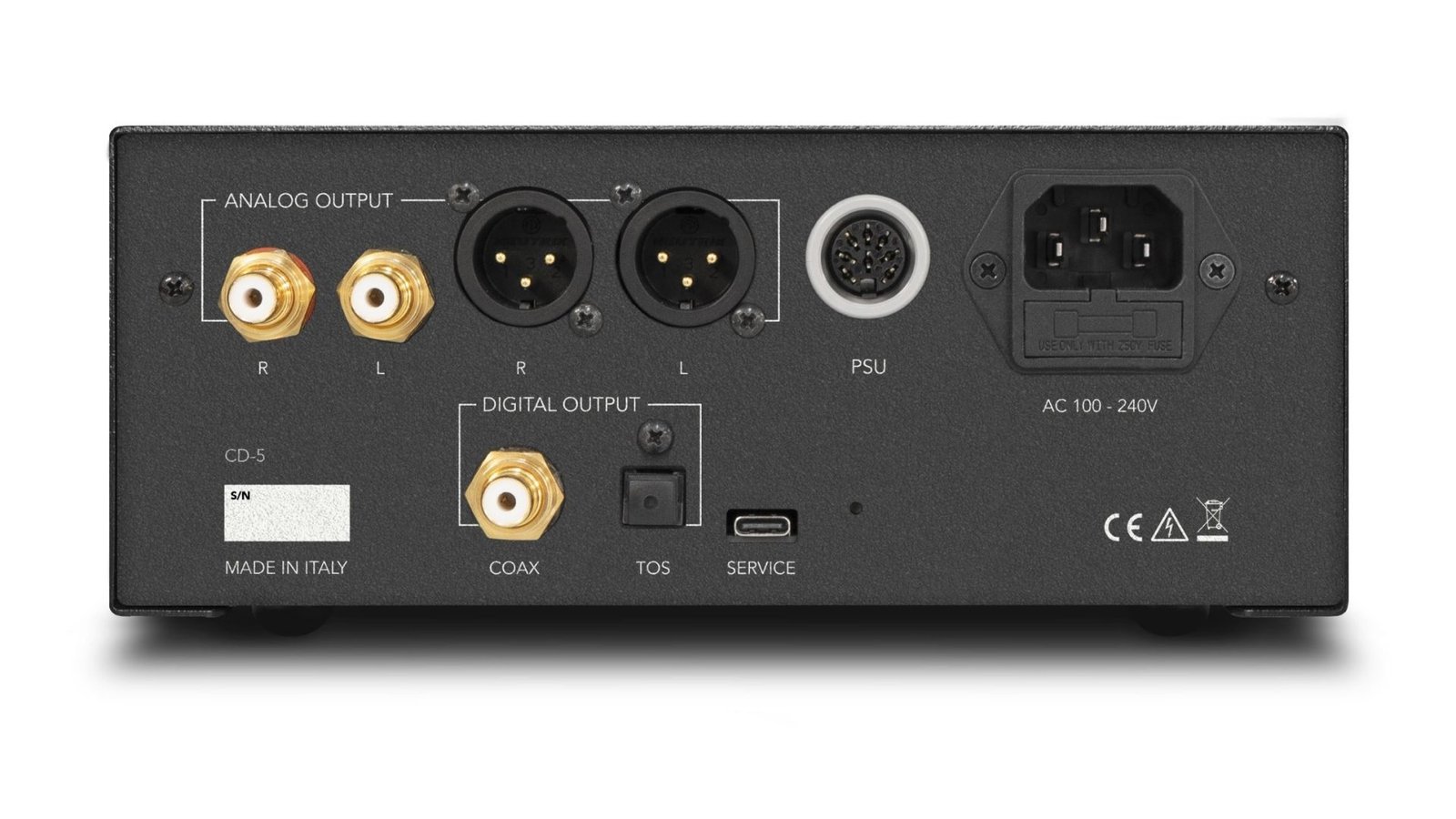 The audio path is said to be carefully engineered on a multi-layer PCB using audio-grade select components and single-sealed relays, ensuring the utmost purity of the signal all the way to the output. The analog signal leaves the CD-5 on the rear panel via balanced XLR or RCA connectors. There are also digital outputs for those who wish to use an external DAC.
