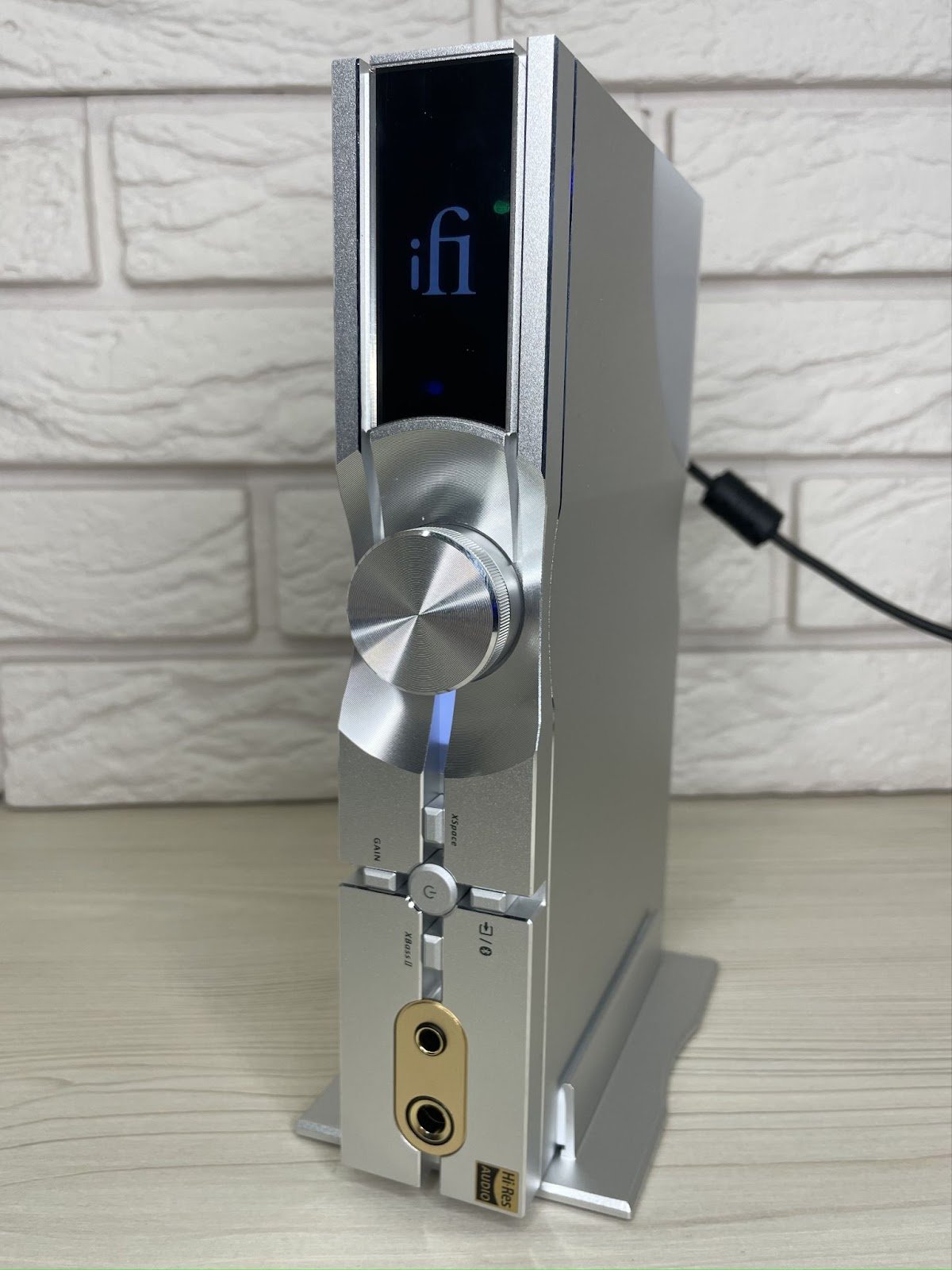 Designed for versatility, the iDSD 2 can be positioned either horizontally or vertically, adapting its 2-inch color display automatically to the orientation. Vertically, it conserves desk space effectively and, when linked to powered speakers through its robust balanced 19.5V output, it demonstrates formidable capability. The preference for analog volume control enhances its superiority over digital alternatives.