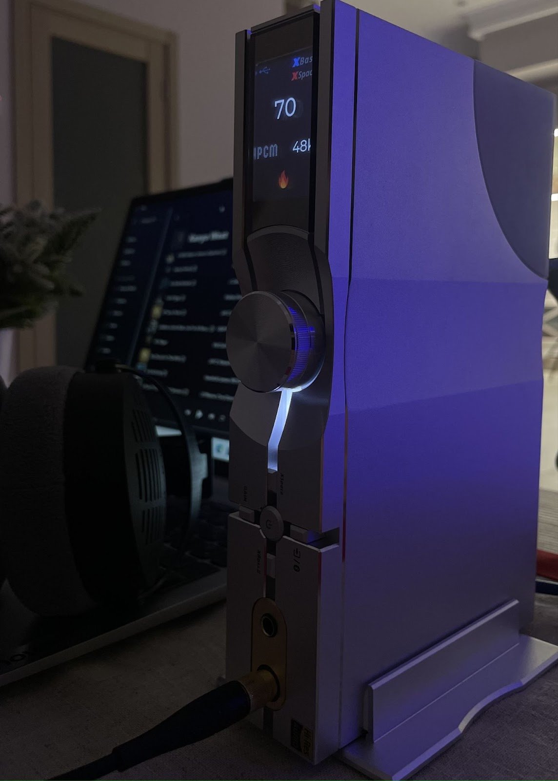 Additionally, the device features XSpace and XBass II analog processing modes, which are specifically designed to enhance the soundstage and low-frequency response based on the unique characteristics of the user's setup. These modes, particularly when XSpace is activated and the first XBass II preset is chosen (notably differentiated by color on the display), significantly improve the audio quality, rendering a more immersive listening experience.
