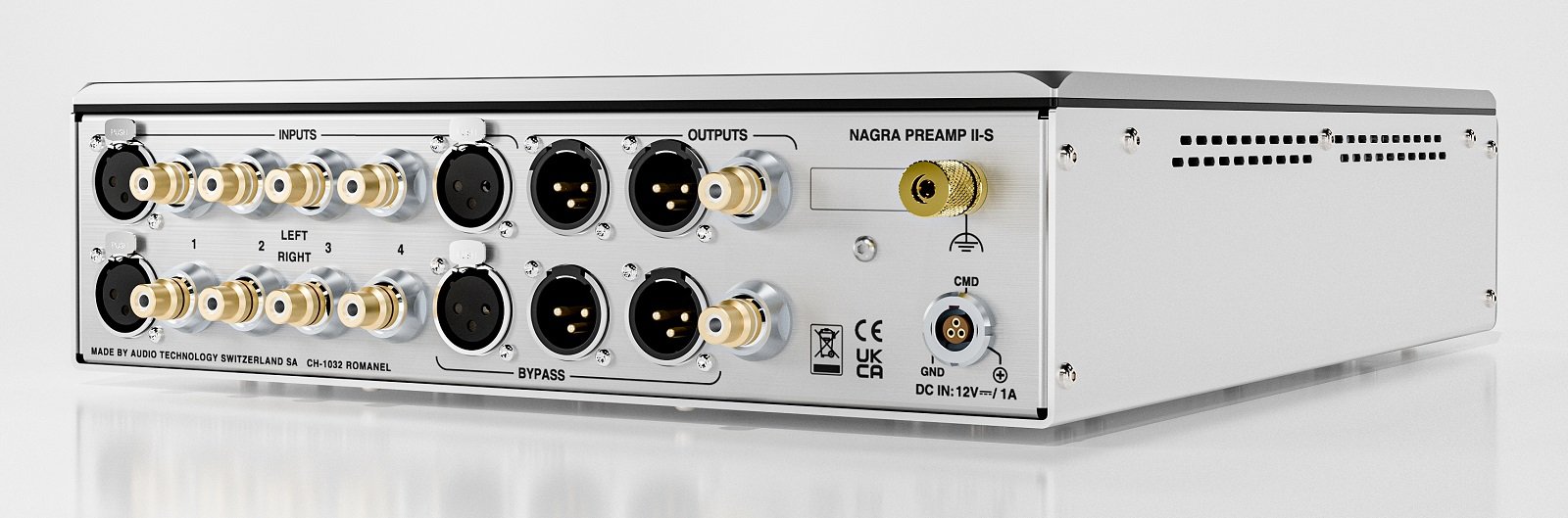 Alternatively, the preamplifier can be ordered without a power supply for owners of a Nagra MPS or Classic PSU. The 12V DC input uses the traditional LEMO connector, a hallmark of professional Nagra products for decades.