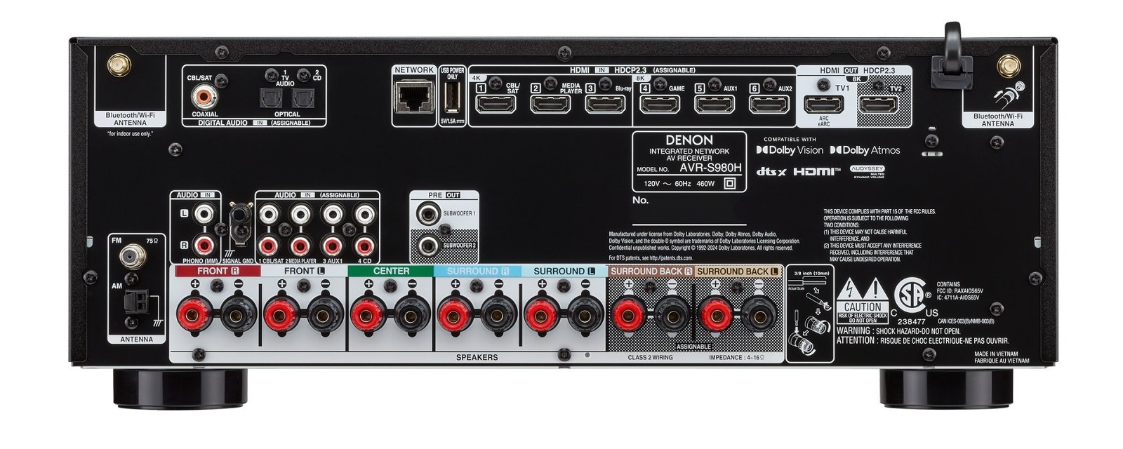 The AVR-S980H has a solid foundation. With 90 watts per channel, the amplifier is powerful enough for intense action movies, dynamic music, and the growing number of high-quality speakers paired with AV receivers today. According to the manufacturer, carefully selected new components ensure more detail and a more accurate spatial sound image, so you enjoy better sound quality every day.