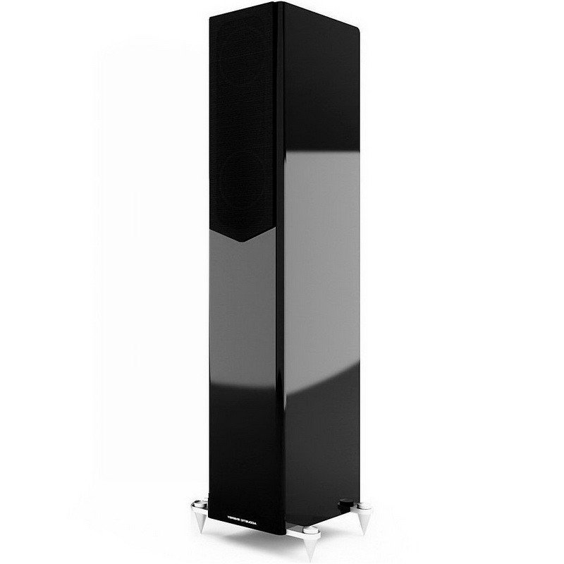 The case design closely resembles that of the Acoustic Energy AE309, featuring a slim front panel and elevated drivers. However, the new flagship models lack a compartment for ballast, relying instead on an increased case mass to minimize resonance, achieved through an additional layer of a rubber-based material. As a result, each speaker weighs a substantial 22 kg, even without the addition of sand or metal shavings.