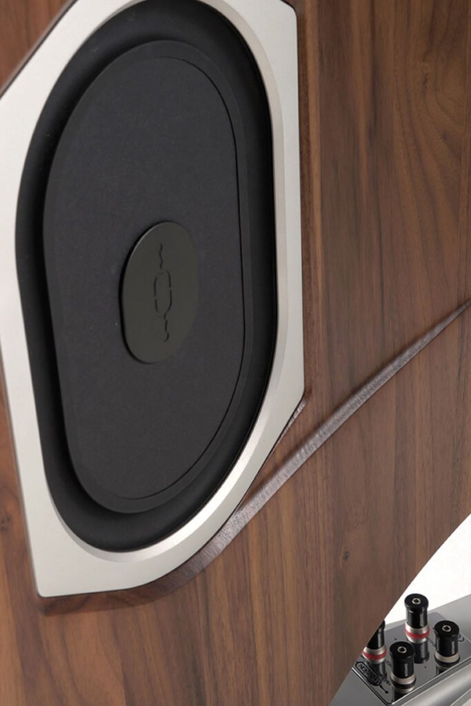 A CNC-machined aluminum frame surrounds the cabinet, acting as a mechanical exoskeleton that absorbs vibrations and maximizes structural rigidity. The surface is hand-polished in multiple layers and finished with a natural, open-pore or high-gloss lacquer finish. According to the builders, this represents a synthesis of technology and aesthetics unique to Italian loudspeaker construction.