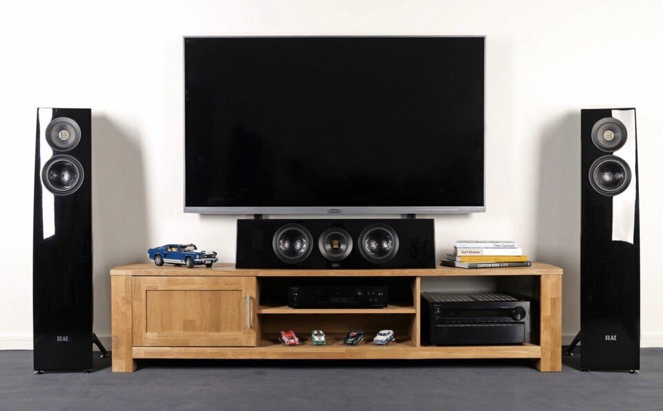 Samsung has decided to strengthen its 2021 soundbar configuration. Thus, the flagship Q950A becomes a record device for the company and for the entire market in terms of the number of channels – 11.1.4. It comes with a wireless subwoofer and two surround speakers. The latter have a 2.0.2 configuration and are also sold under the 9500s brand as a separate accessory for other soundbar models, complementing them with their multidirectional speakers.