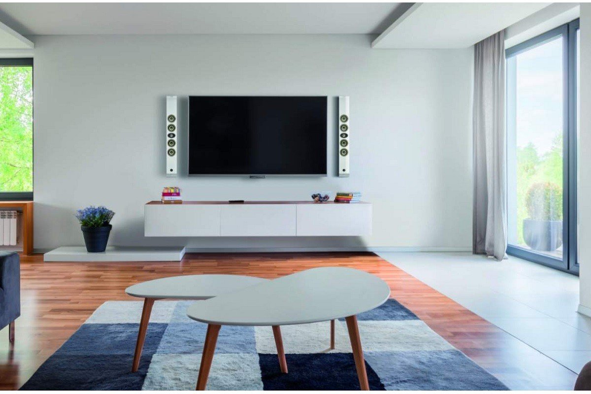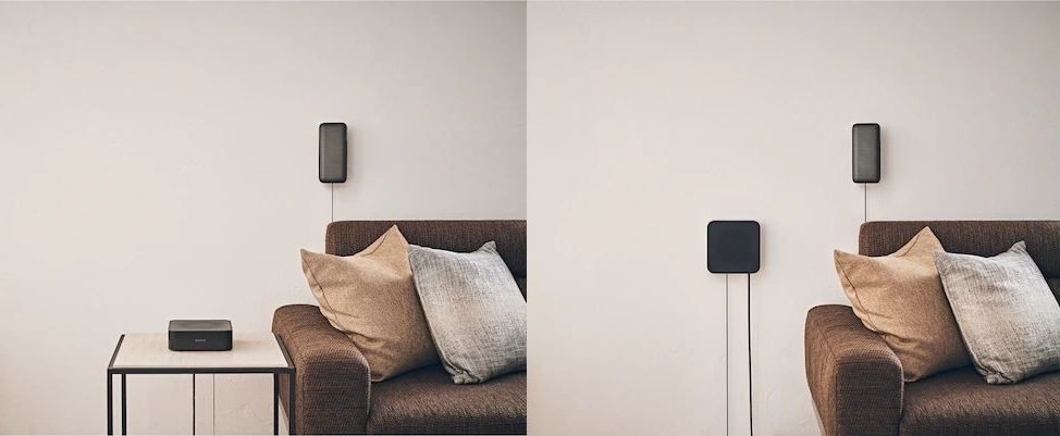 The soundbar also works wirelessly with a subwoofer and satellites, but additional speakers still have to be connected with wires to a special compact amplifier that comes with the kit. The amplifier can be simply placed next to it, or mounted on the wall.