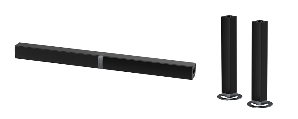 In the new soundbar, Samsung is adding a pair of side emitters to its wireless rear speakers to further expand the soundstage. Both the front and rear also have upward facing speaker blocks to ensure proper Dolby Atmos / DTS: X performance.