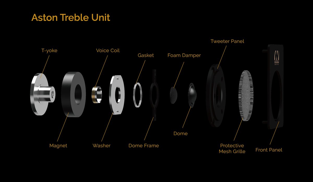 To ensure optimal driver integration, the Aston employs a crossover filter that utilizes premium air-core coils and polypropylene capacitors. The crossover slopes and power response have been meticulously refined through comprehensive listening evaluations.