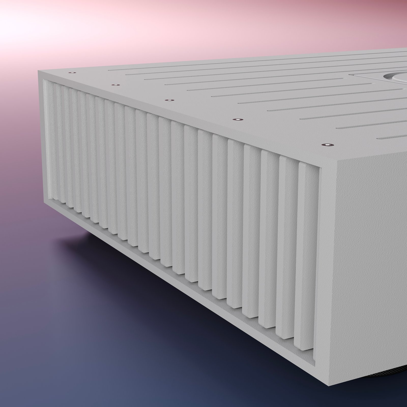 The Eidos Streamer introduces advanced hardware innovations for superior sound quality. A passive cooling system featuring water-filled heatpipes ensures silent and stable operation. The hardware is housed in a CNC-milled aluminum chassis, available in elegant gray or black, and is equipped with Goldmund's signature feet for a better mechanical foundation. The device fits seamlessly into sophisticated interiors and harmonizes with the Goldmund product collection.