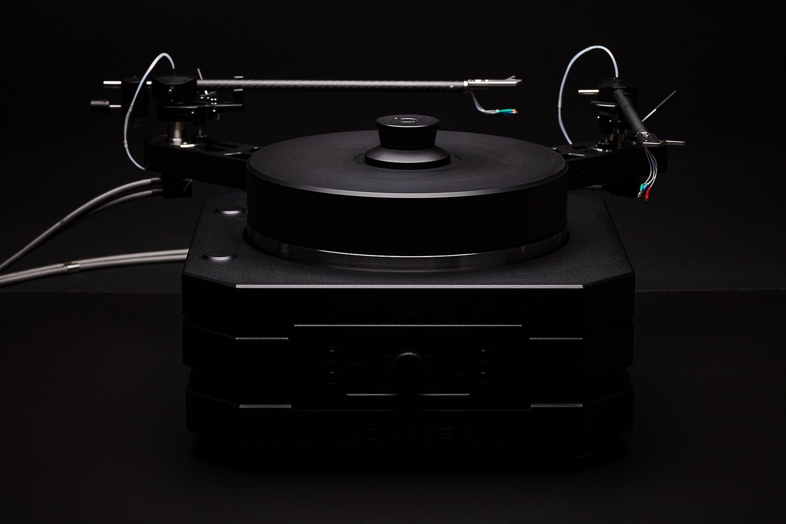 The drive system is a powerful BLDC motor (3-phase, 8-pole, 20 Watts), controlled by a Swiss-designed driver and controlled by Benny Audio's own custom-programmed microcontroller. The drive includes a high-precision pulley, soft start and stop, continuous speed control via an open-loop system that monitors and adjusts the platter speed after each revolution, adaptive speed correction, smooth torque adjustment, customizable backlighting and a rotary switch.